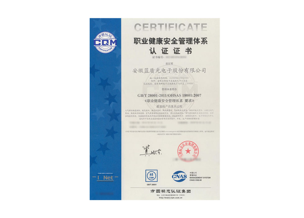 職業(yè)健康安全管理體系認(rèn)證證書